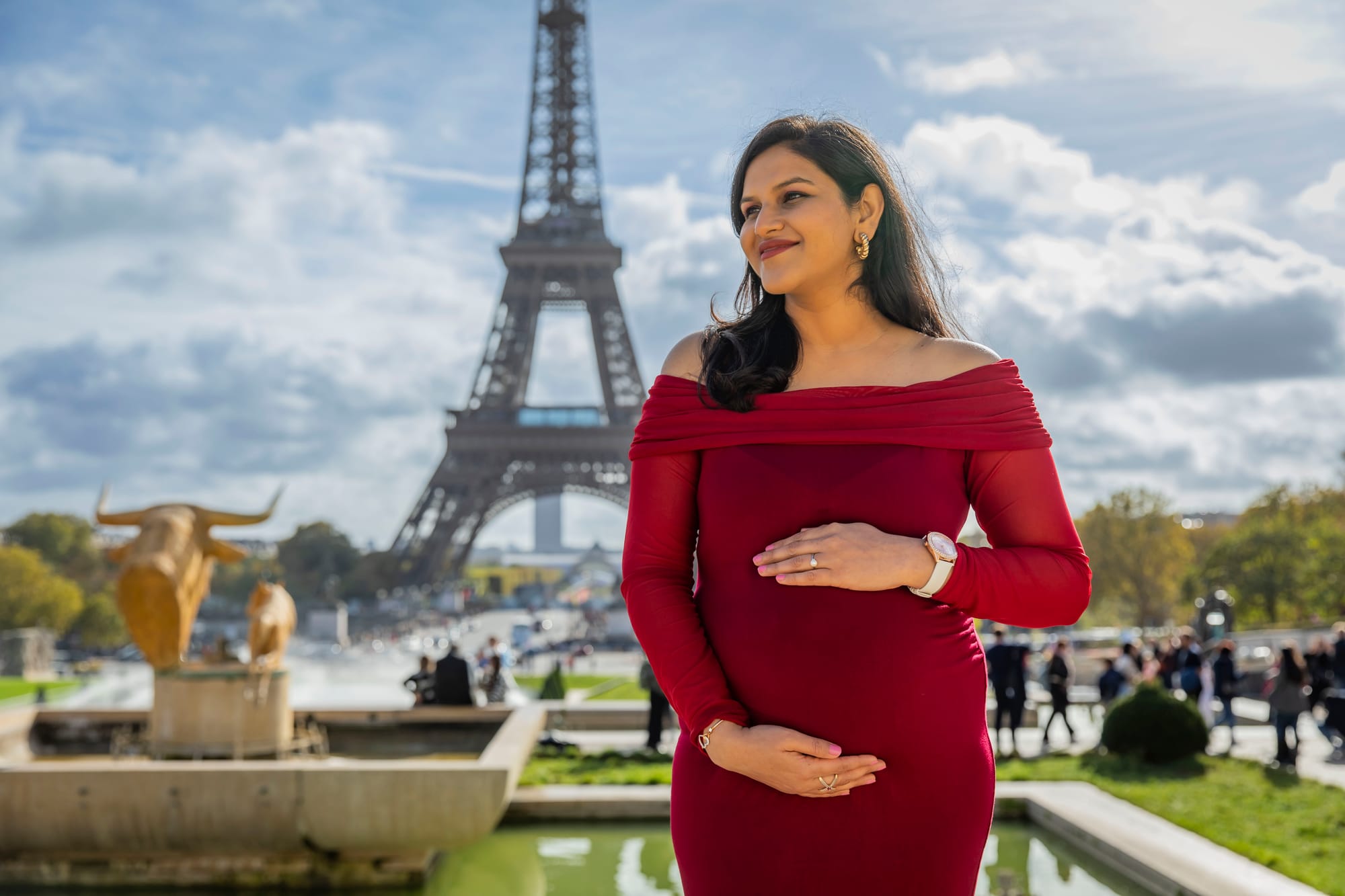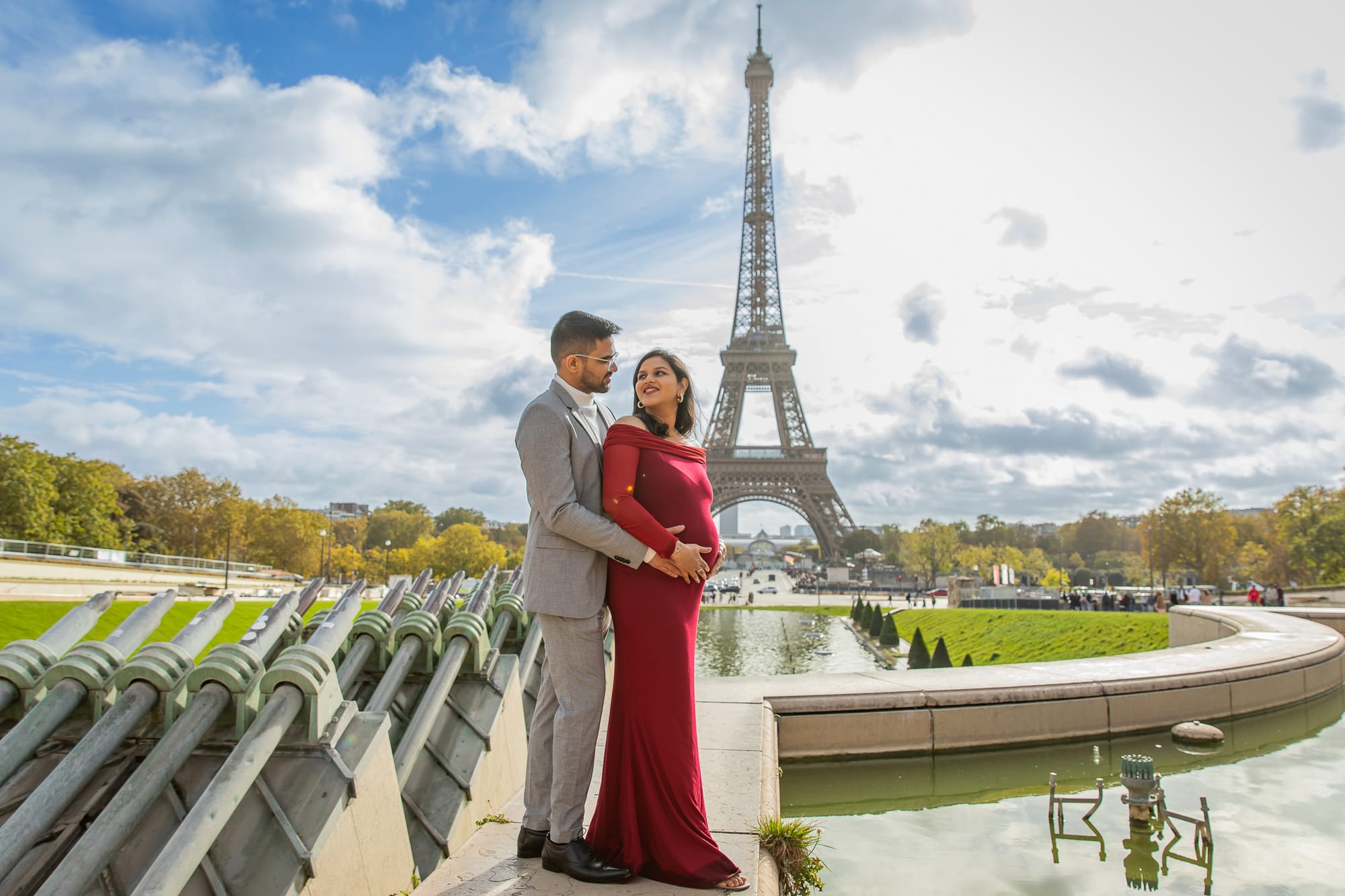 Check out these stunning parents-to-be dressed to perfection in front of the iconic Eiffel Tower.