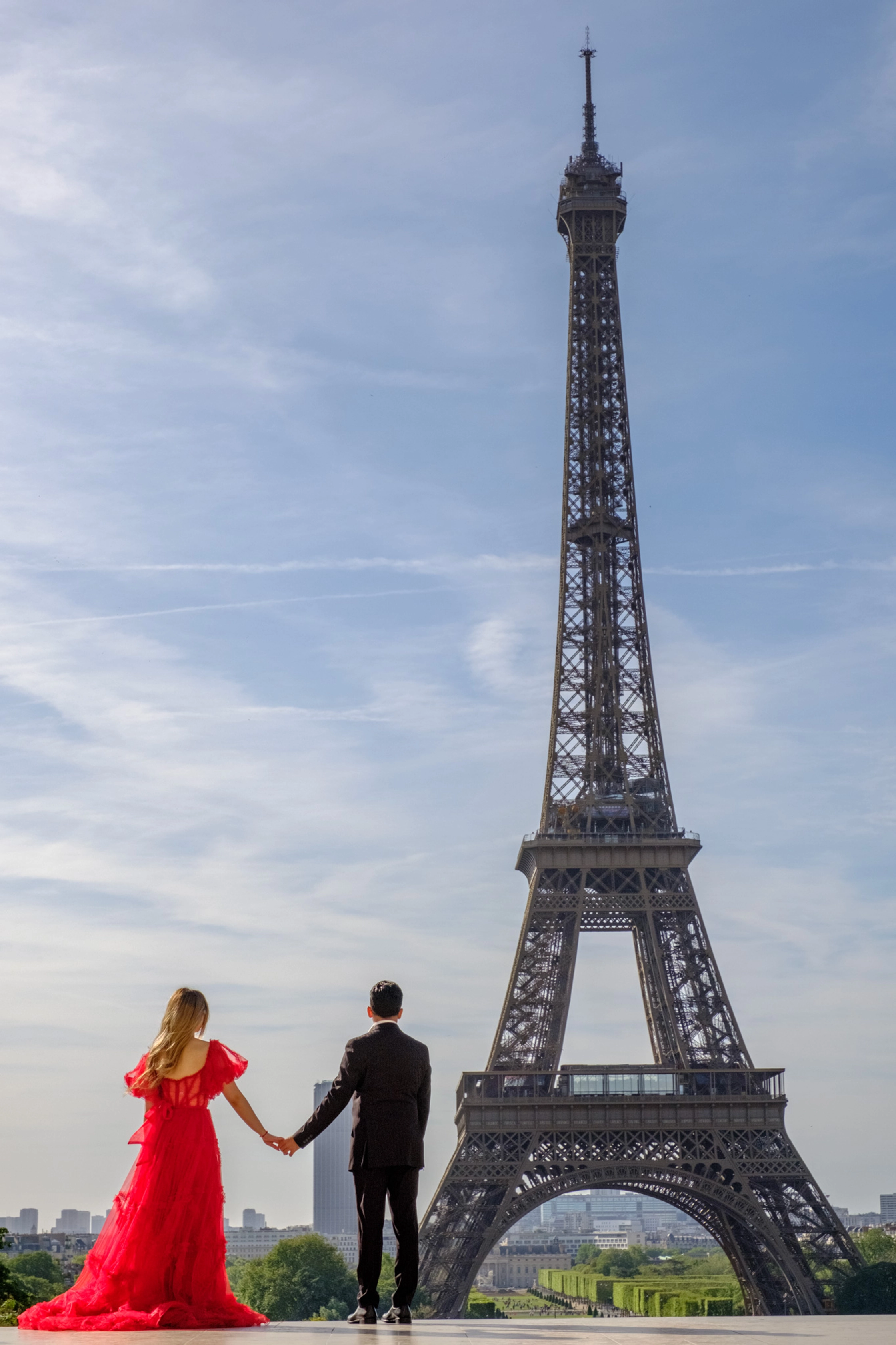 This is a private 2.5-hour photoshoot across three iconic Paris locations — the Louvre, the Arc de Triomphe, and the Eiffel Tower. The session can be divided into two or three parts, allowing you to capture photos in both daytime and nighttime settings, either on the same day or on different days.